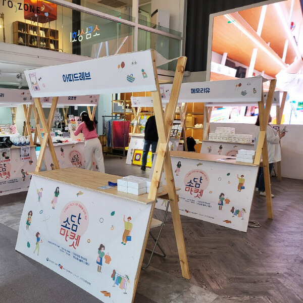 간편한 조립으로 엘리베이터 등 행사장 위치에 구애받지 않고, 설치가 쉽고, 5~10분이내로 조립이 빠른 것이 장점입니다.