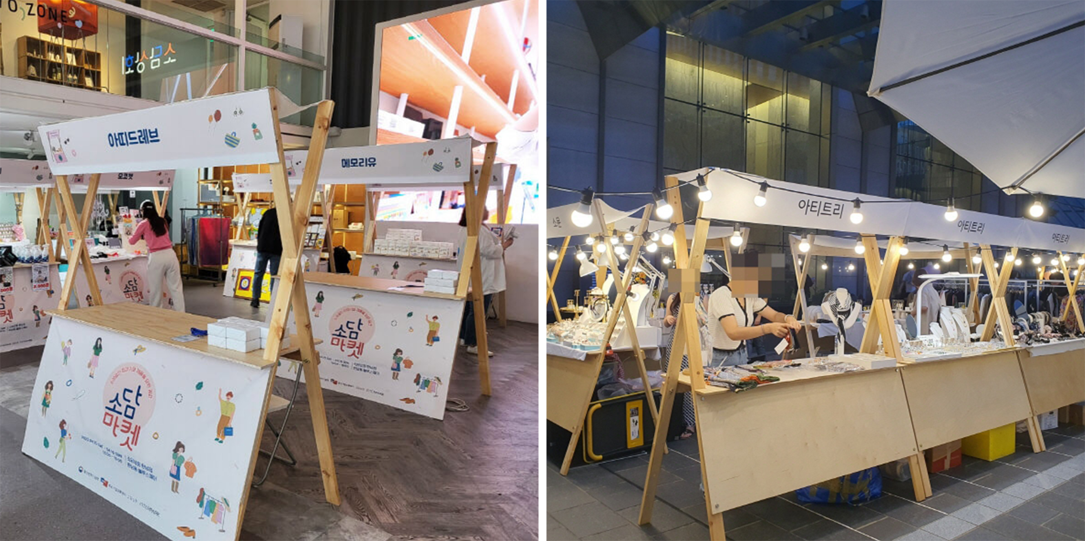 상부/하부 에 현수막 부착, 스트링 전구, T5 전등 조명 추가가 가능합니다.